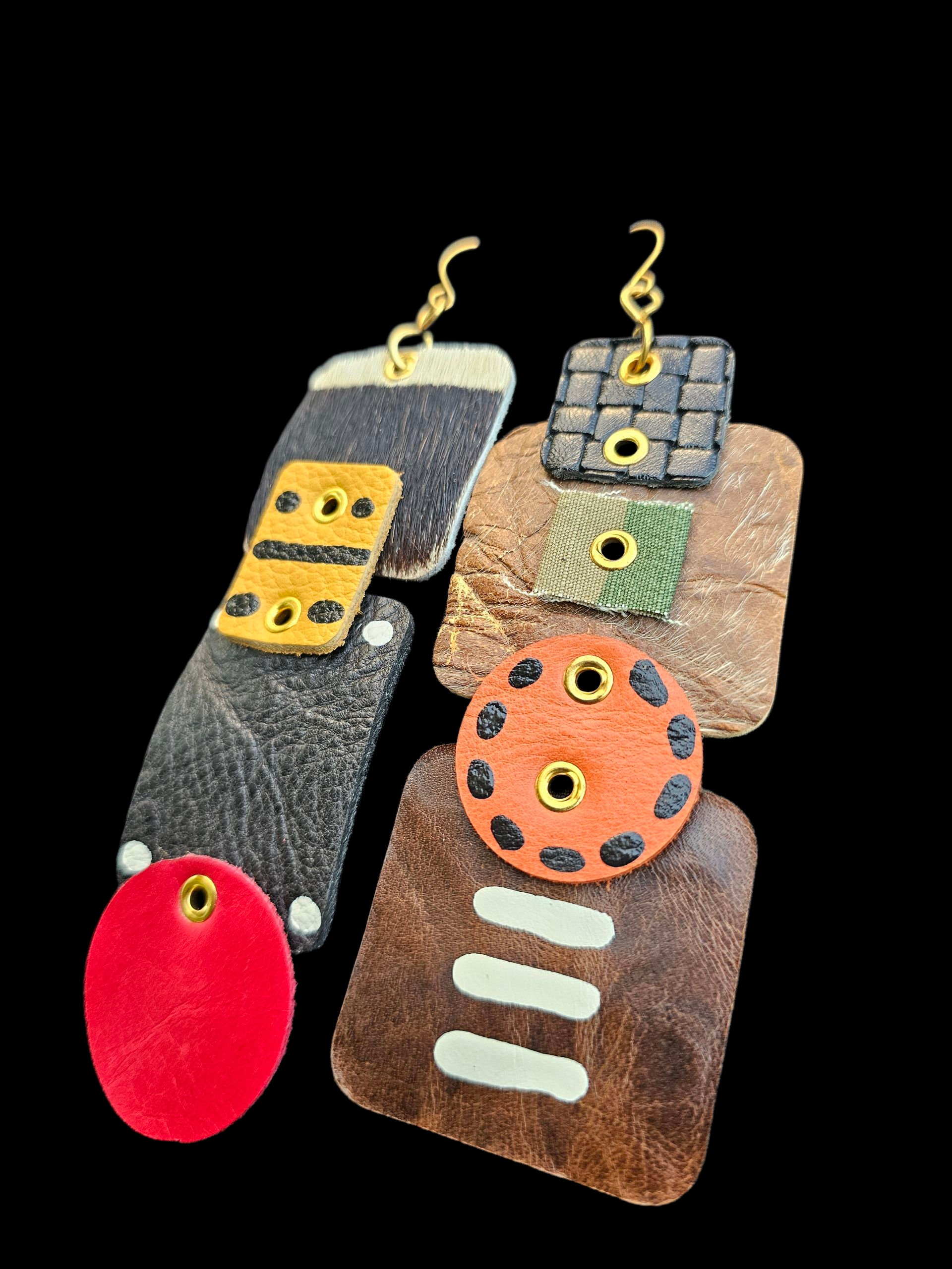 Evoke your inner Bohemian with our "28 Stony Island" earrings! Handmade with the finest leathers and handpainted in Texas, these one-of-a-kind earrings will make a statement. Hang or lay flat to maintain their perfect shape. Perfect for year-round wear, the fall colors will add a touch of natural beauty to any outfit.