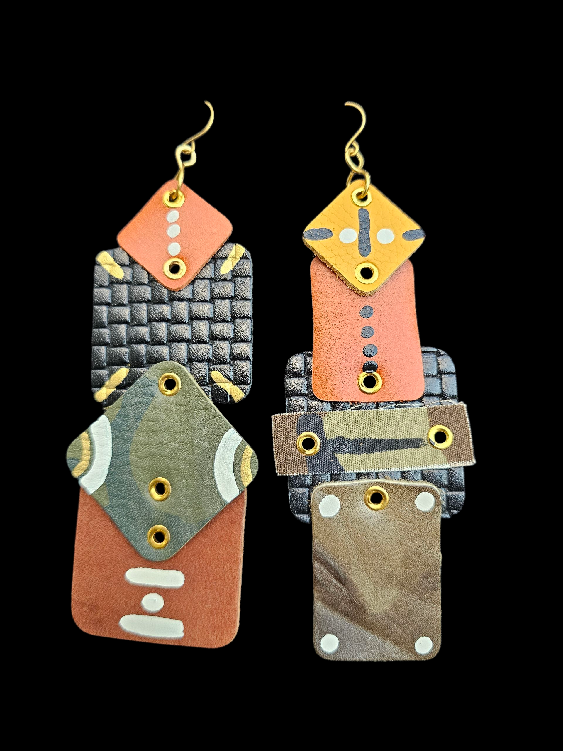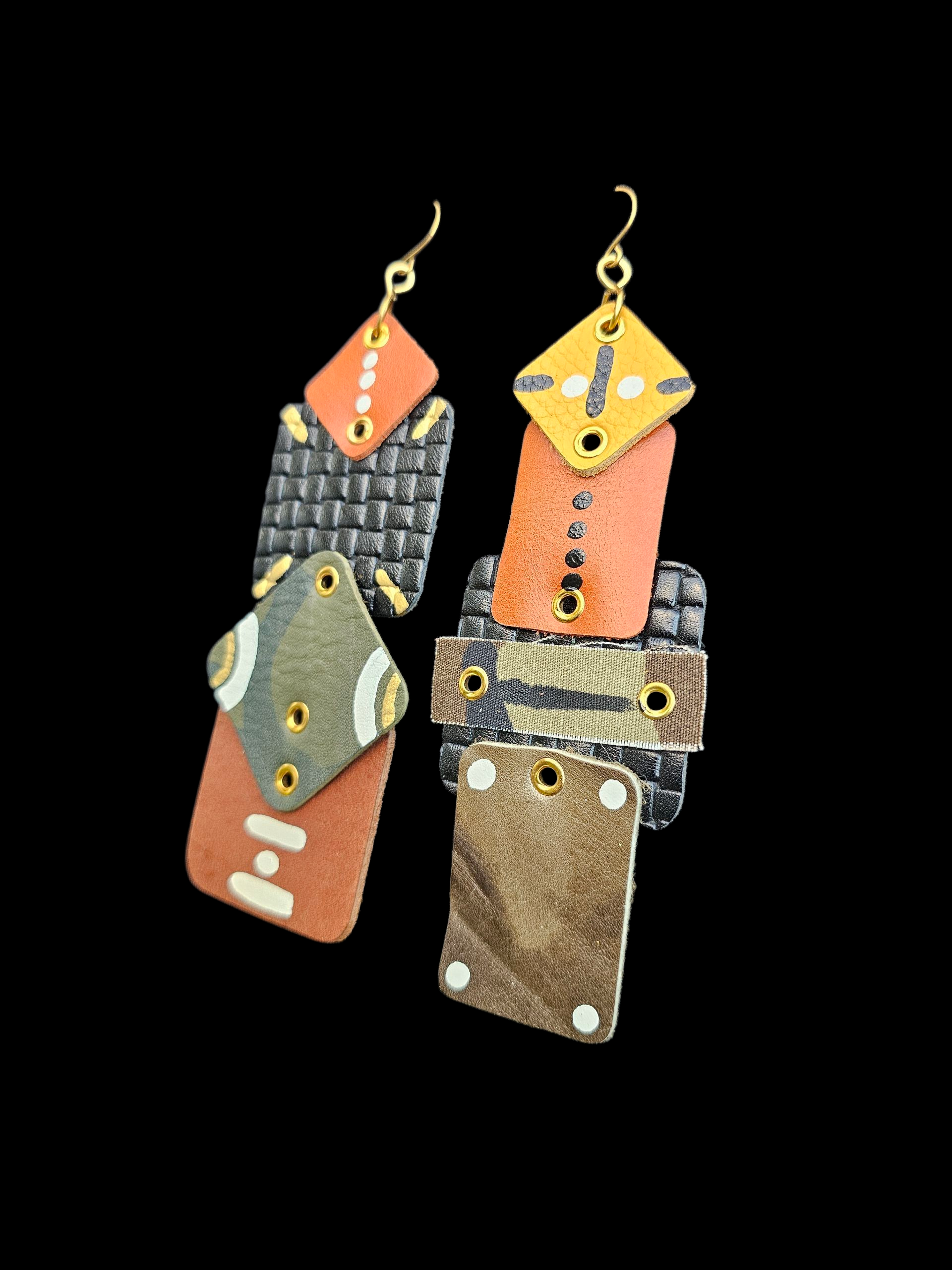 Evoke your inner Bohemian with our "28 Stony Island" earrings! Handmade with the finest leathers and handpainted in Texas, these one-of-a-kind earrings will make a statement. Hang or lay flat to maintain their perfect shape. Perfect for year-round wear, the fall colors will add a touch of natural beauty to any outfit.