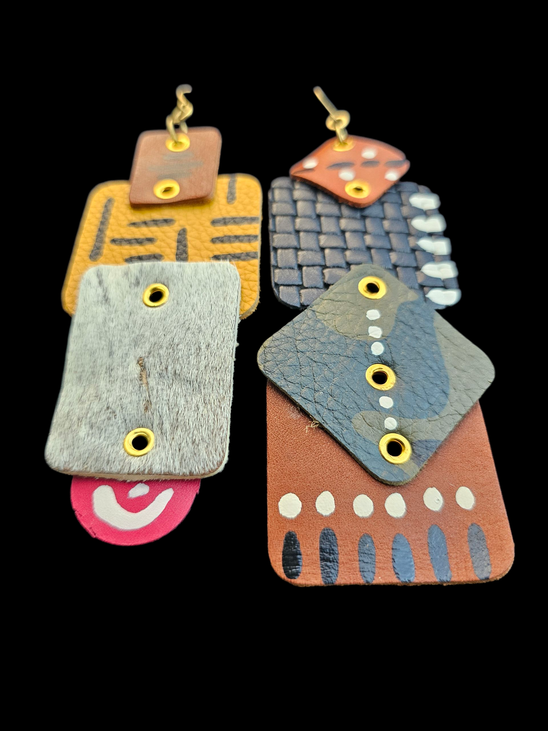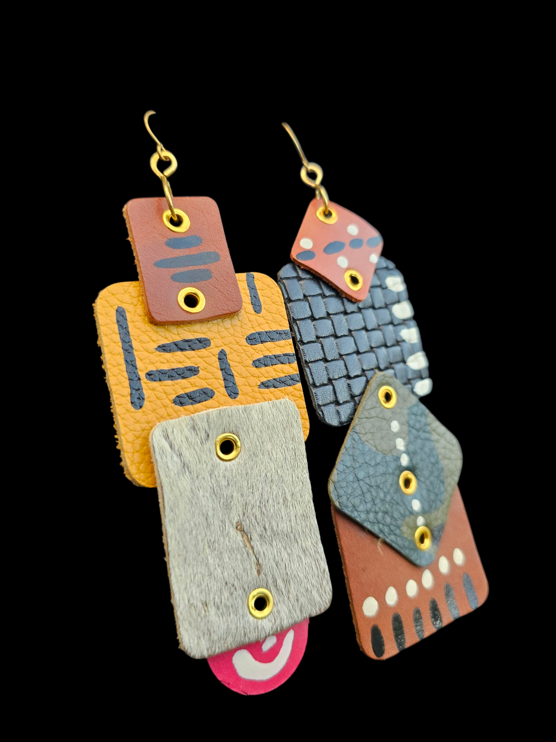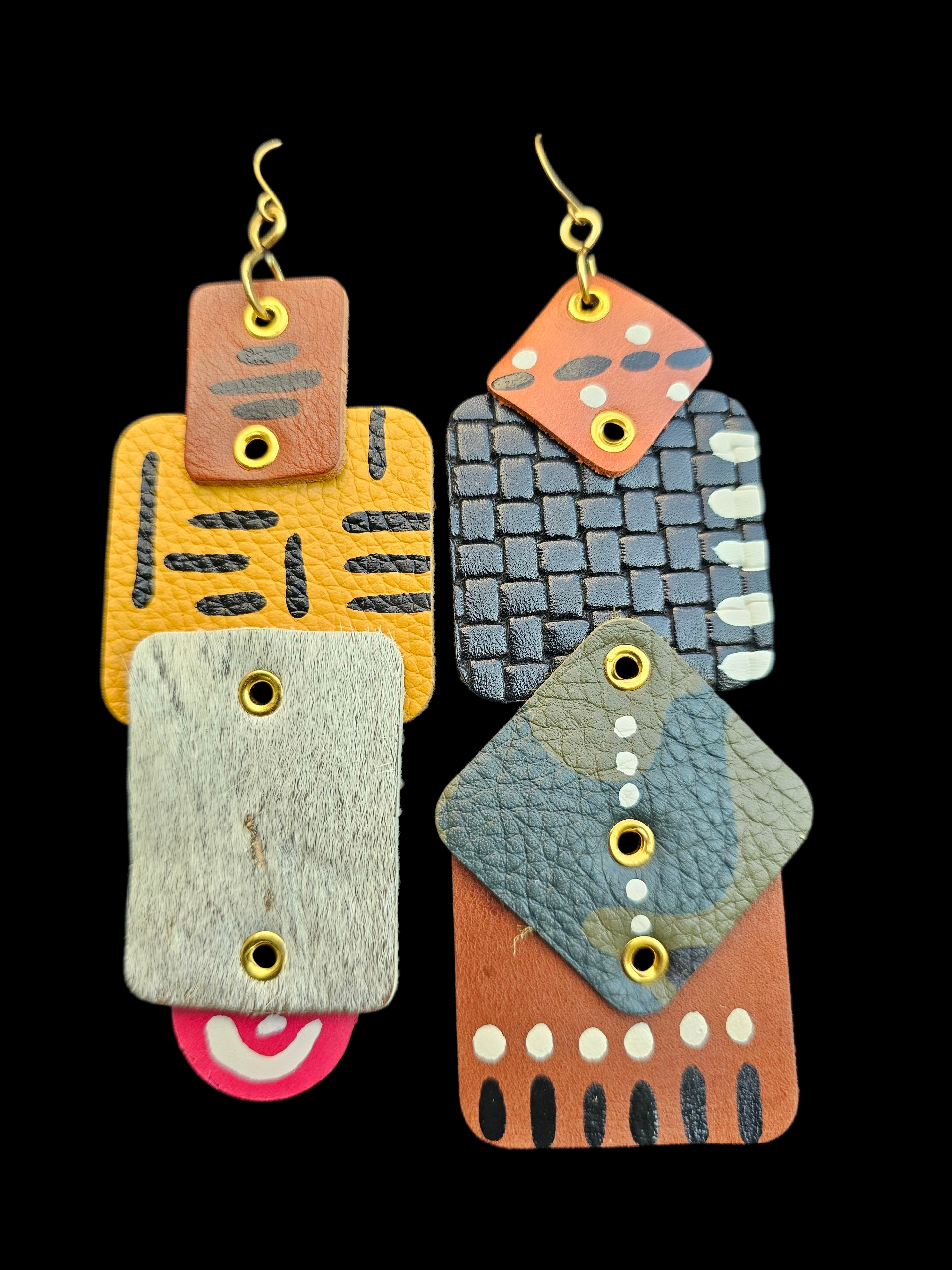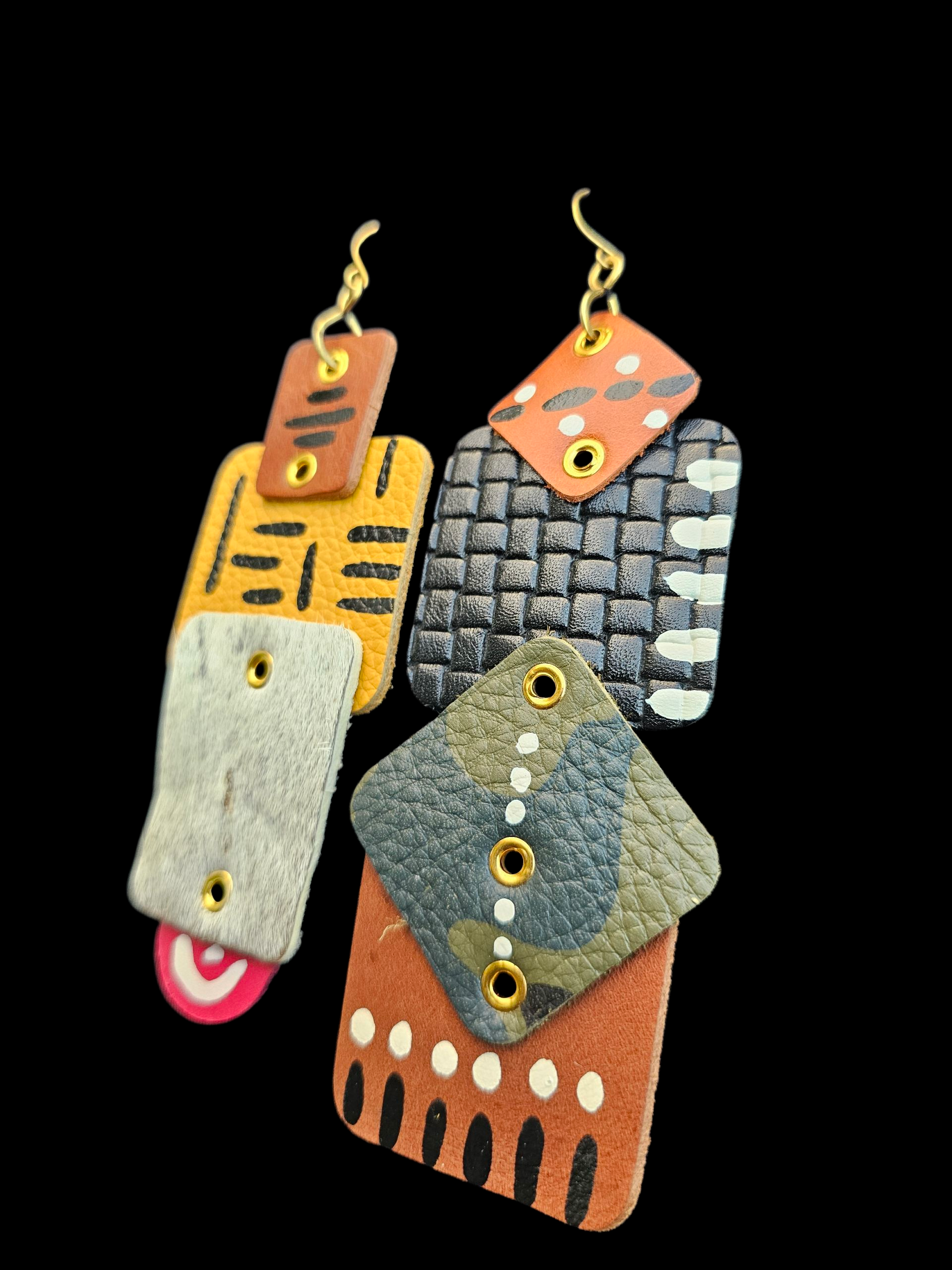 Evoke your inner Bohemian with our "28 Stony Island" earrings! Handmade with the finest leathers and handpainted in Texas, these one-of-a-kind earrings will make a statement. Hang or lay flat to maintain their perfect shape. Perfect for year-round wear, the fall colors will add a touch of natural beauty to any outfit.